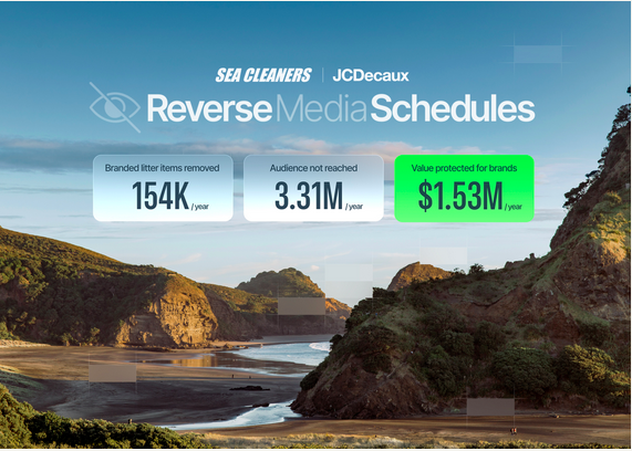 Всяка изхвърлена опаковка с лого е outdoor реклама. Никой не я поръчал. Никой не я е одобрил. Никой не е платил за нея. И всеки ден тя върши работата си — само че наобратно: не изгражда имидж, а го разрушава. Това е изходната точка на „Reverse Media Schedules" — може би най-интелигентната екологична кампания на годината, родена от партньорството между Sea Cleaners, JCDecaux и Dentsu Creative Aoteora.