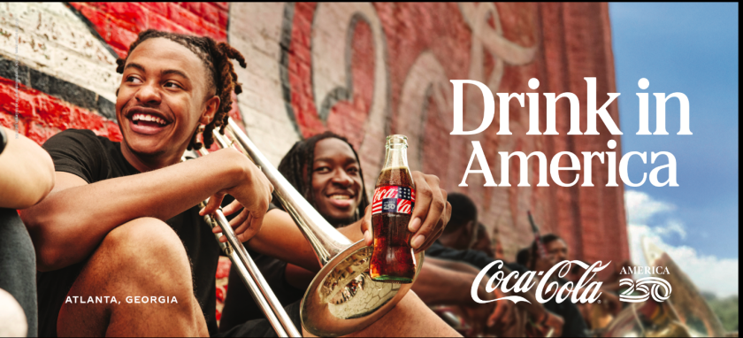 Coca-Cola стартира мащабна национална кампания в САЩ по повод 250-годишнината на страната като официален партньор на America250 — националната инициатива и организация, координираща отбелязването на 250 години от подписването на Декларацията за независимост през 1776 г. Инициативата, озаглавена „Drink in America“, стъпва върху една от най-разпознаваемите реклами в историята на бранда — „Hilltop“ от 1971 г., която е преработена с ново, изцяло американско послание.